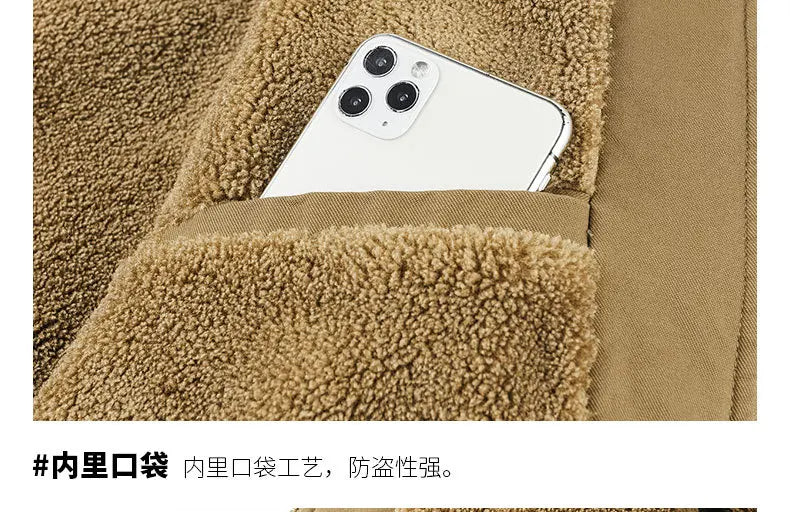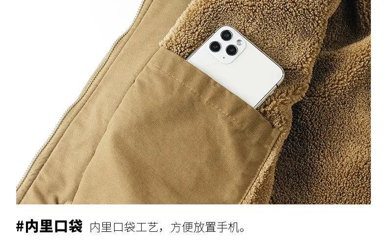 Autumn and Winter Moto Riding Jacket Velvet Cotton Coat Thickened and Warm Loose Lapel Pure Cotton Work Jacket Casual Sherpa
