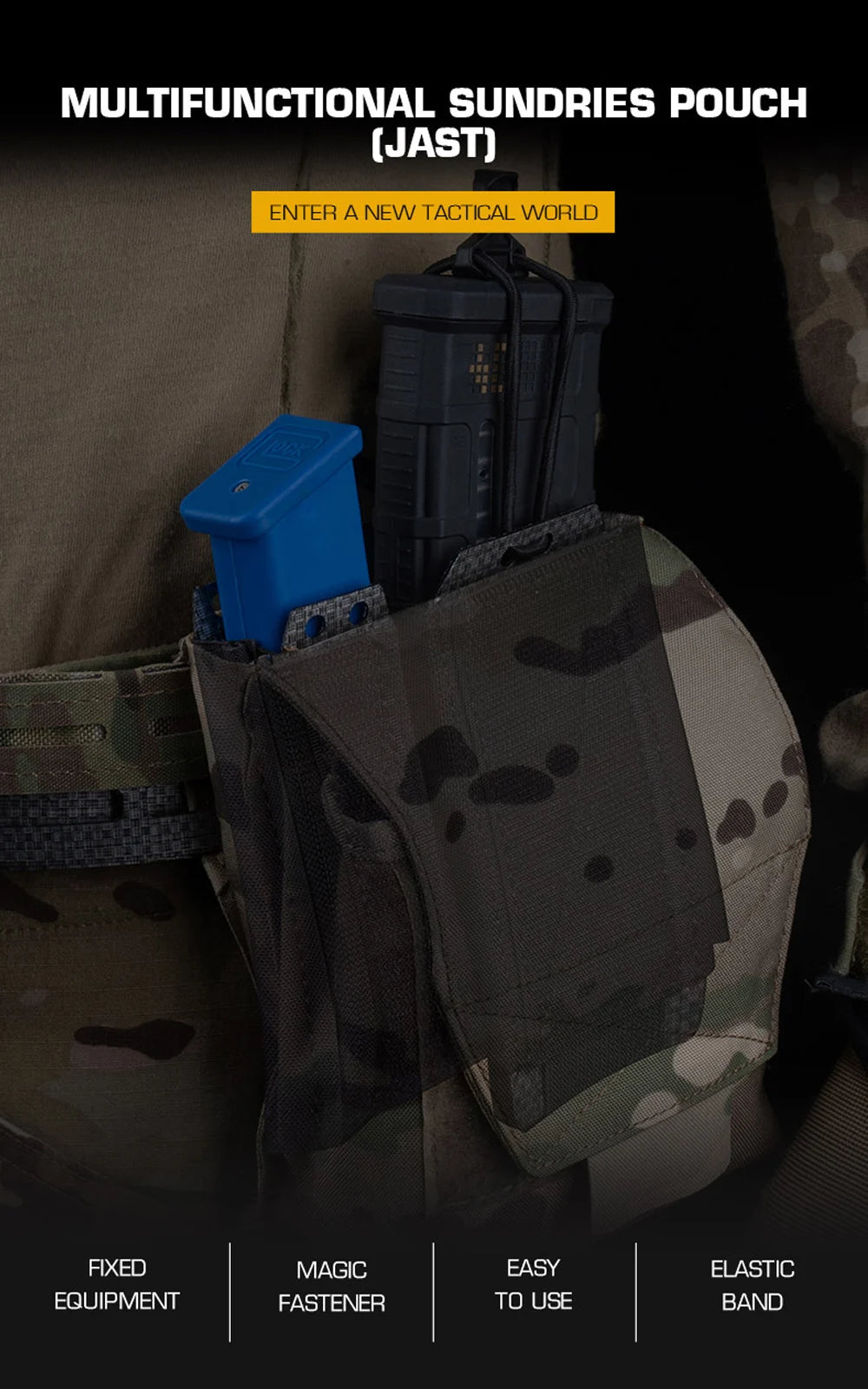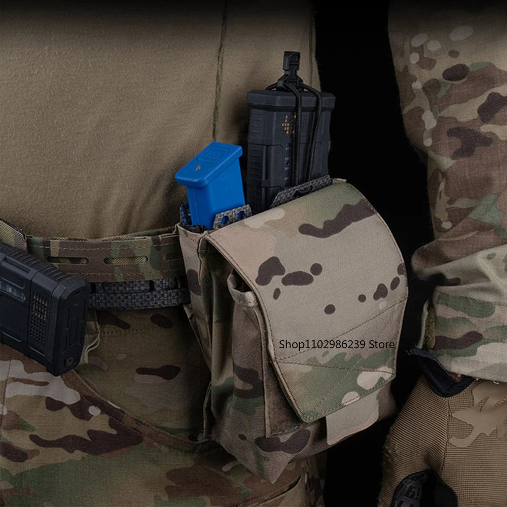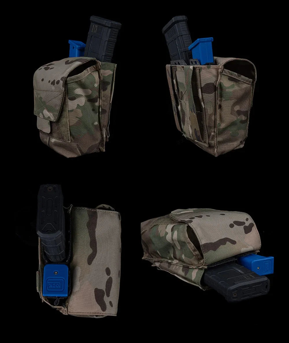Professional multifunctional magazine holder featuring universal compatibility for 9MM, 5.56, and 7.62 ammunition. Essential tactical accessory.