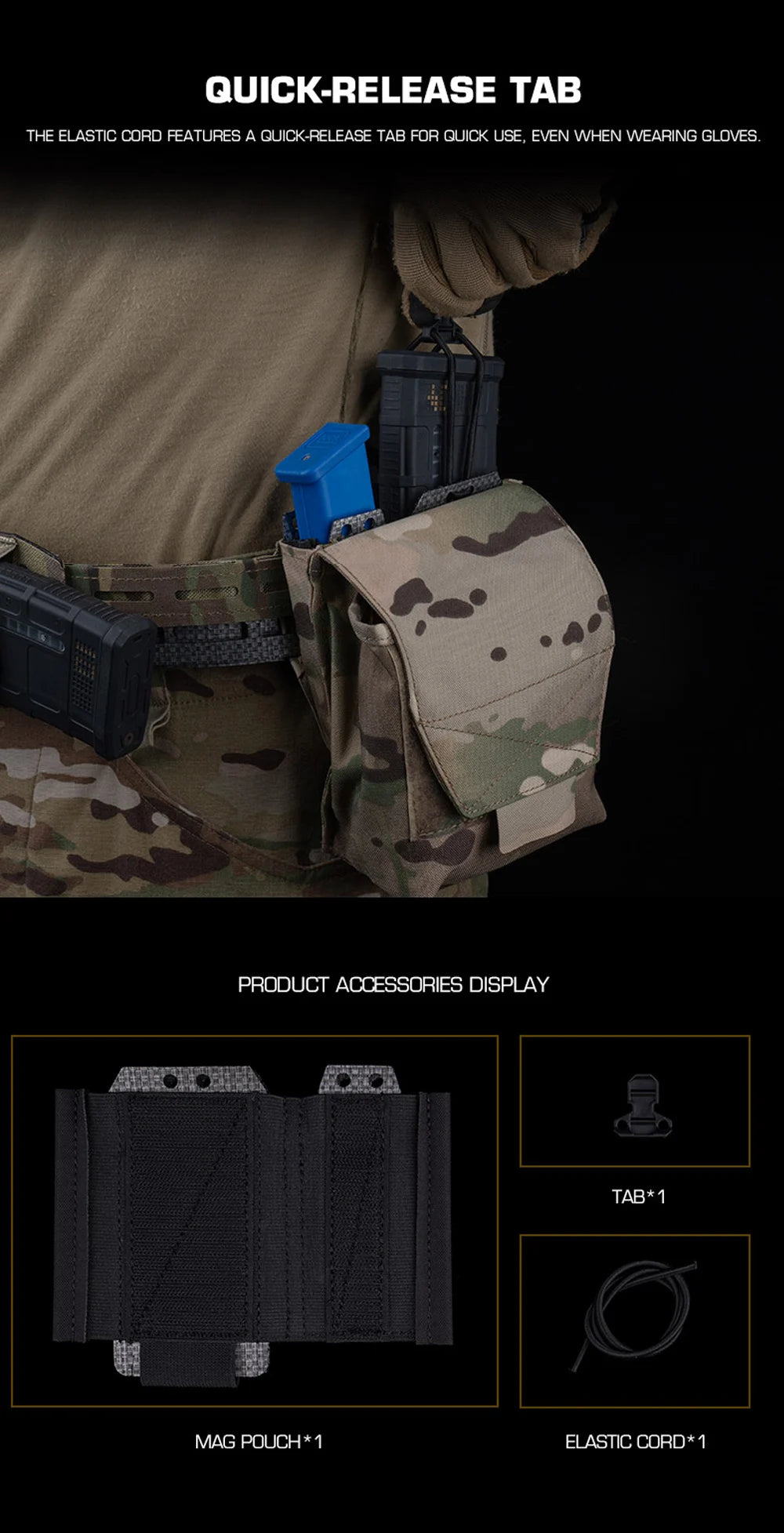 Special Features: Universal fit, MOLLE insert, elastic retention