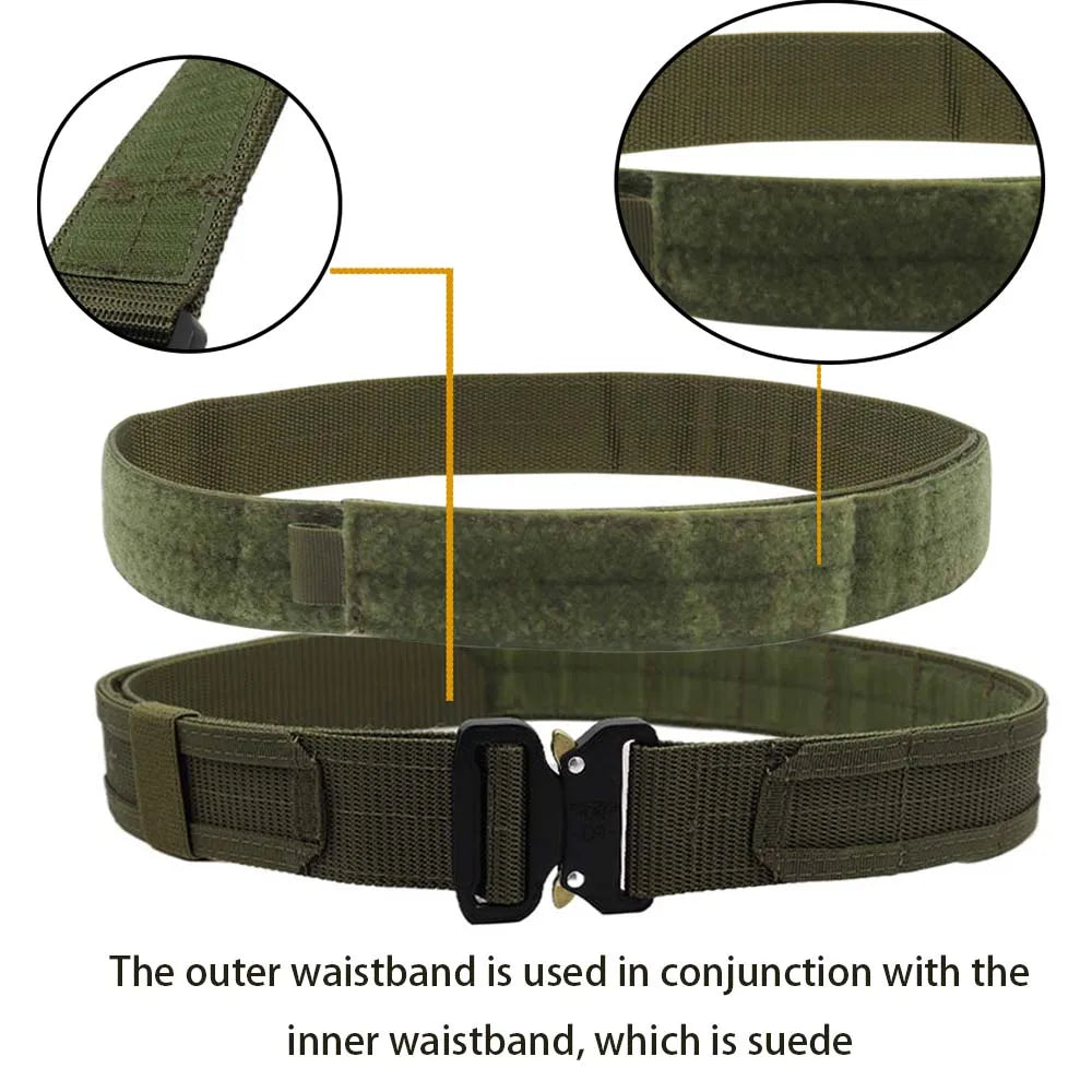 Professional tactical belt system featuring innovative two-in-one design with inner belt and outer buckle belt for maximum versatility.