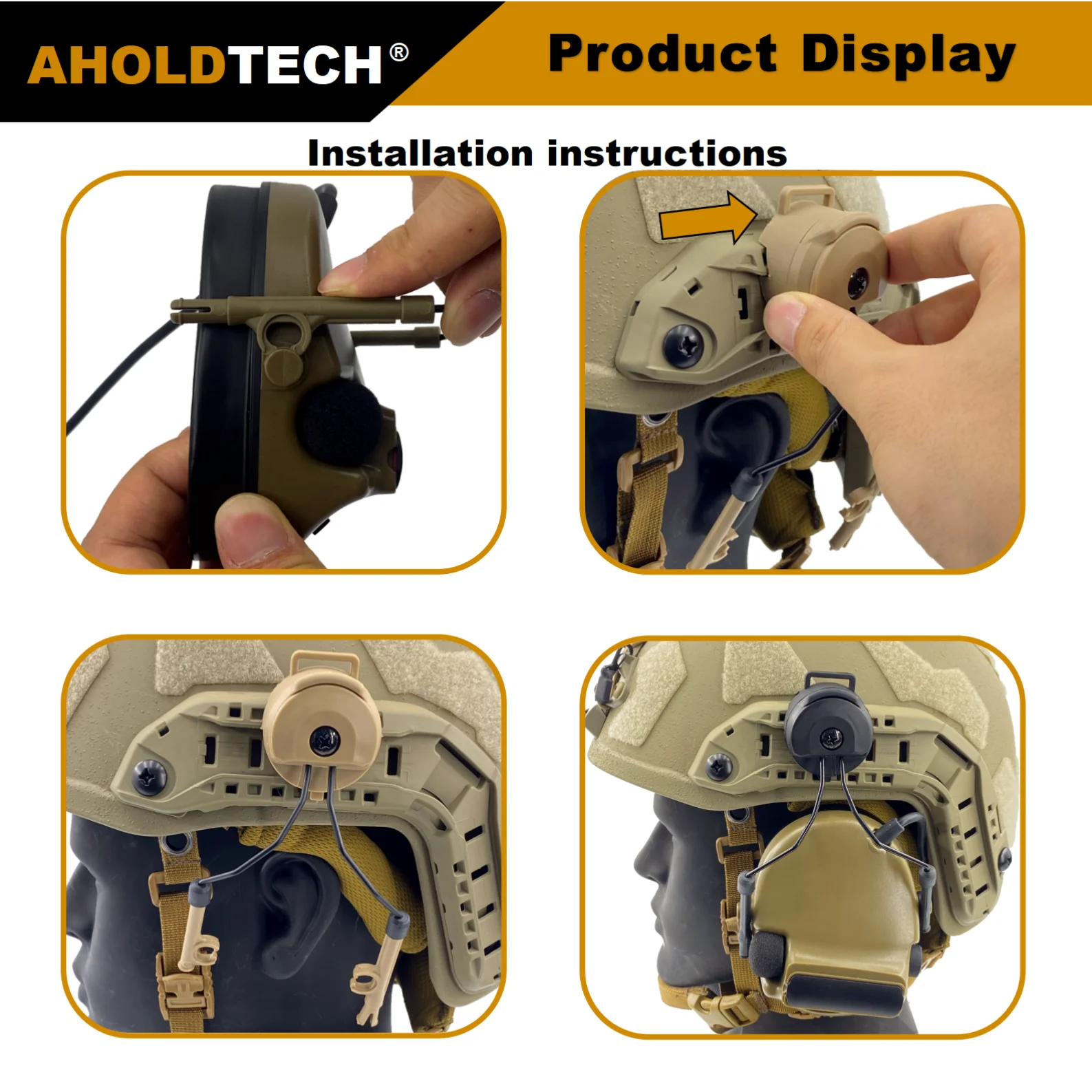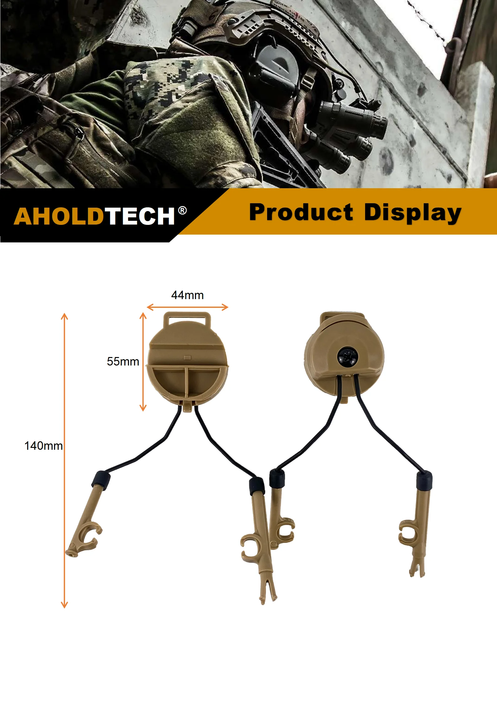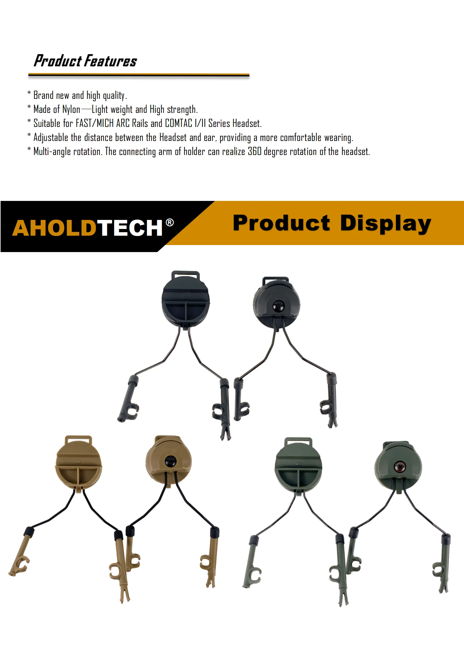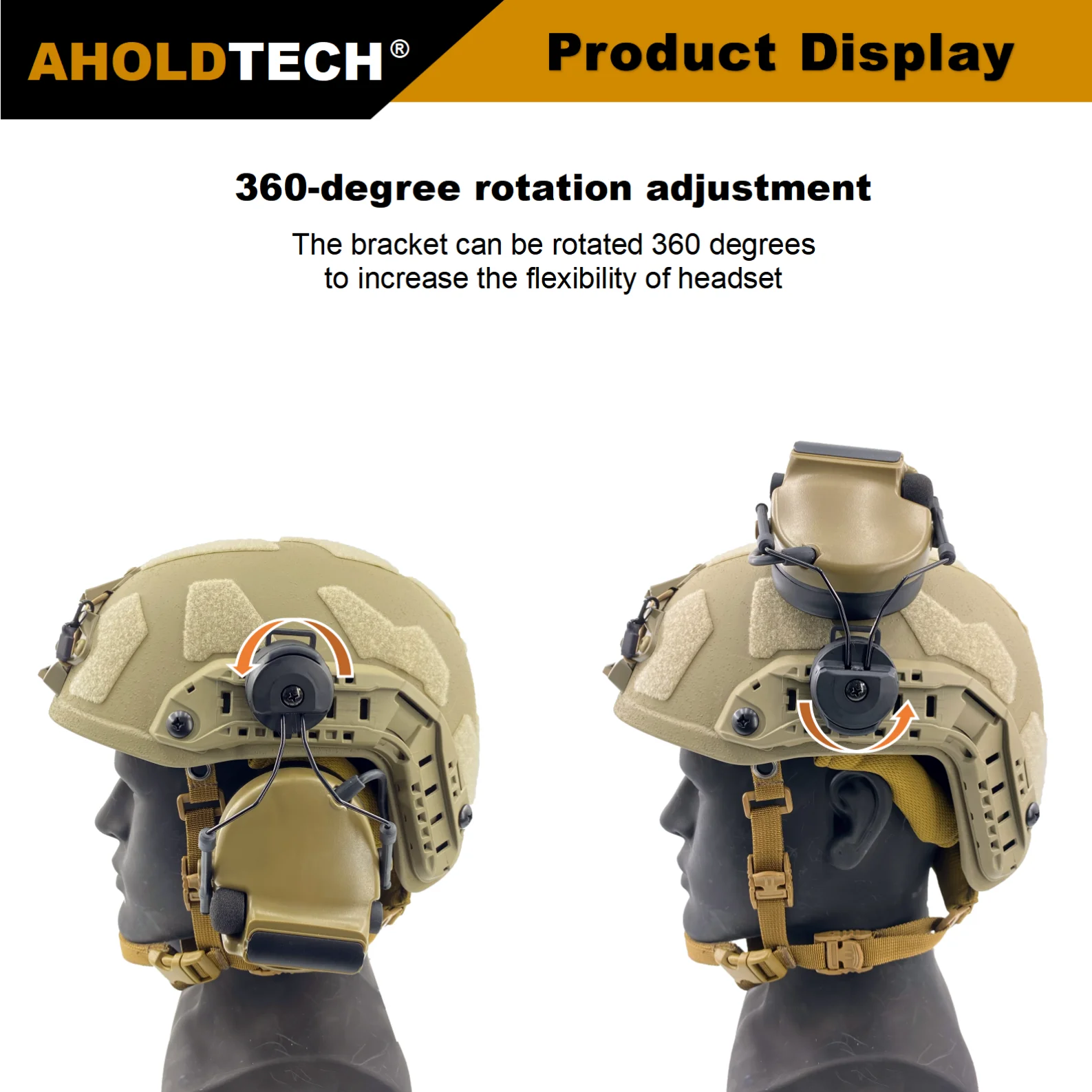 AHOLDTECH Tactical Fast MICH Helmet ARC Rail holder 360-degree rotation adjustment headphone bracket For COMTAC I II Headset