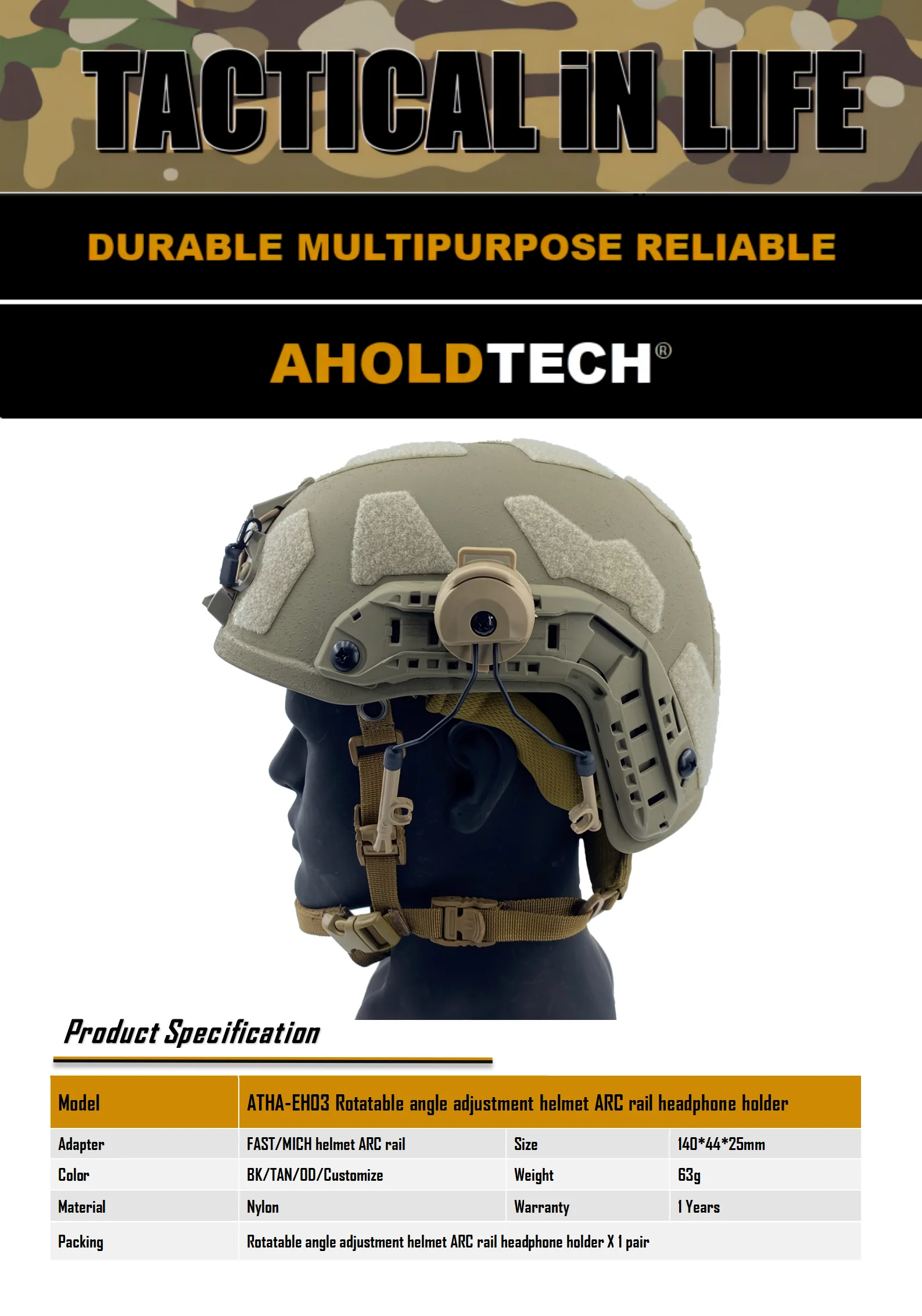 Model: ATHA-EH03 Rotatable angle adjustment helmet ARC rail headphone holder