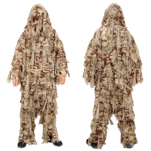 The Desert Camo Ghillie Suit is your advantage when concealment matters most.