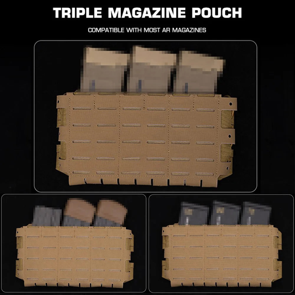 Featuring a laser-cut MOLLE system, it allows you to attach pouches, tools, magazines, and mission-essential gear with precision and stability. The adjustable harness ensures a secure and comfortable fit for all body types, while the ventilated mesh backing improves airflow during long missions.