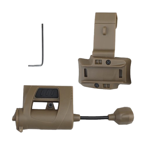 The Tactical Helmet Light is a compact, mission-ready lighting system built for operators, airsoft players, and anyone who needs reliable illumination in the field. With multiple visible modes and an infrared option for NVG use, this light delivers professional performance in any environment.
