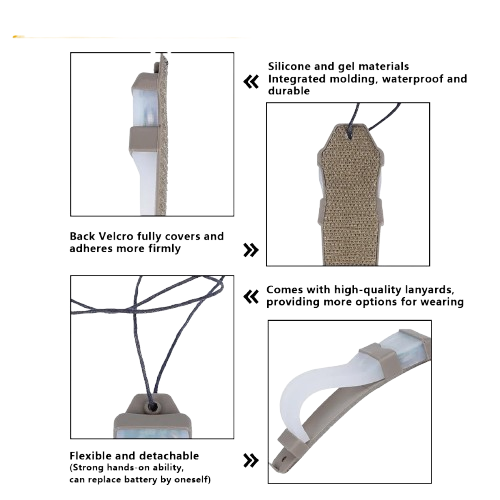 Made from durable gel silicone, this marker bends easily and mounts securely to helmets, belts, MOLLE gear, or backpacks. Powered by a CR2032 battery, it offers simple field replacement—just slide the silicone body open and swap the cell.