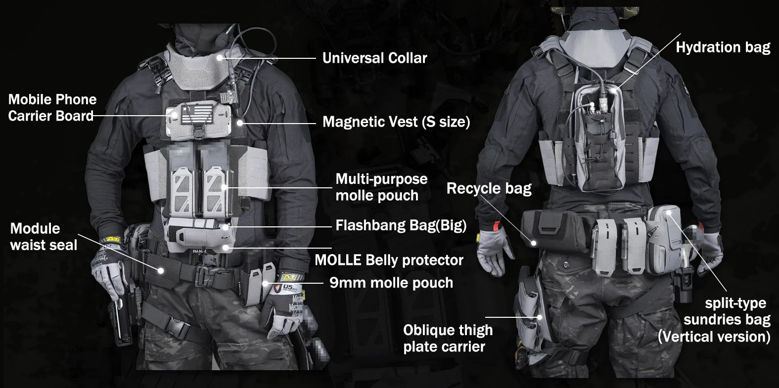 Inspired by advanced loadouts shown in the image, this harness integrates seamlessly with: